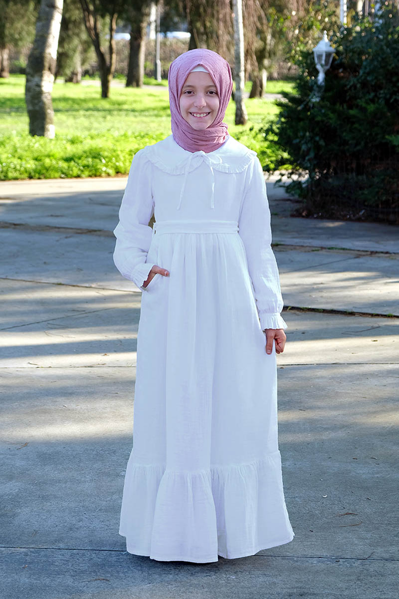 Çocuk Tesettür Elbise Ada Model Beyaz Ürün Özellikleri