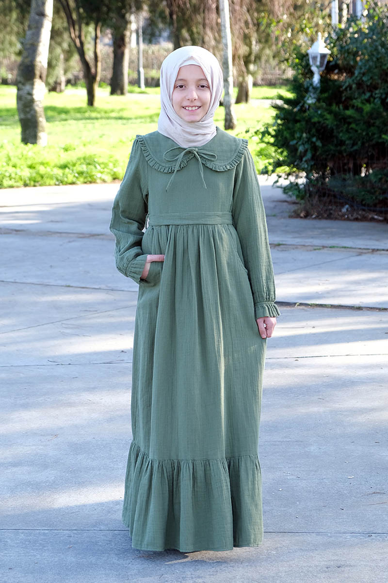 Çocuk Tesettür Elbise Ada Model Haki Ürün Özellikleri