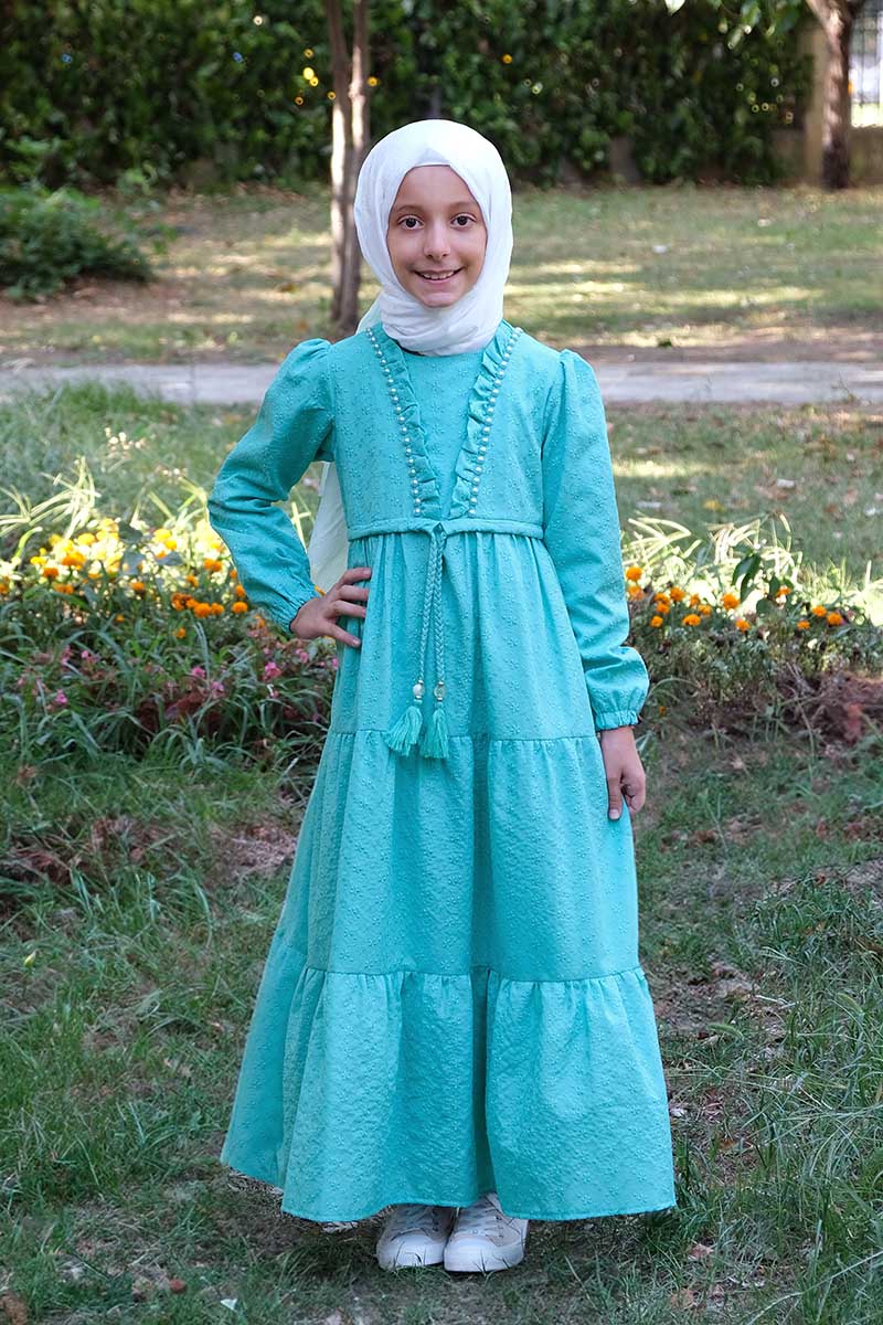 Çocuk Tesettür Elbise Biricik Model Su Yeşil Ürün Özellikleri