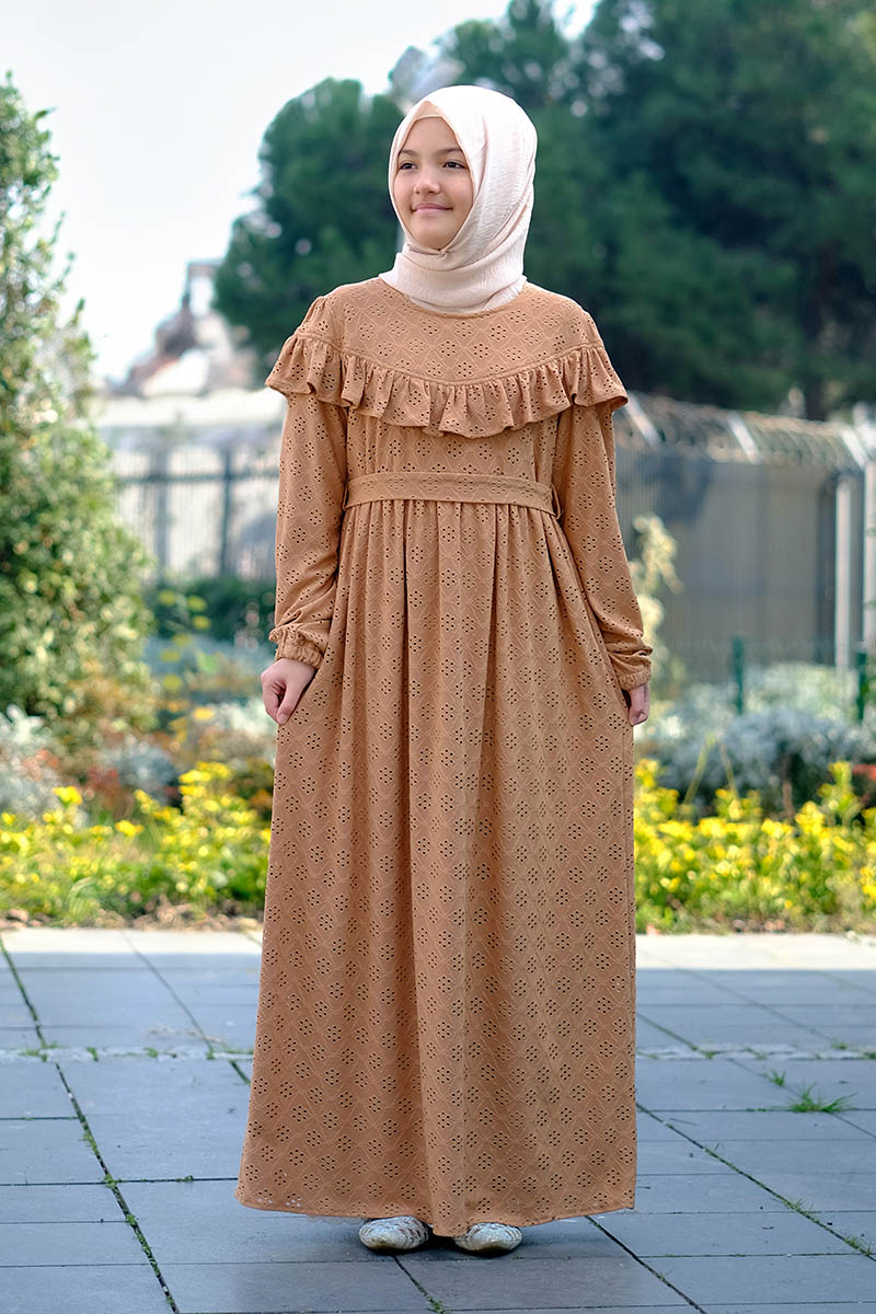 Çocuk Tesettür Elbise İlknur Model Pudra Ürün Özellikleri