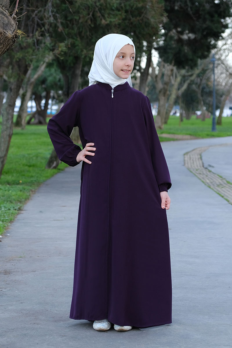 Çocuk Tesettür Ferace Arkası Piliseli Model Mor Ürün Özellikleri