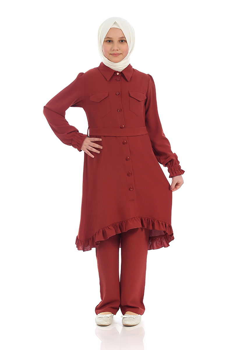 Çocuk Tesettür Tunik Takım Düğmeli Model KiremitÜrün Özellikleri