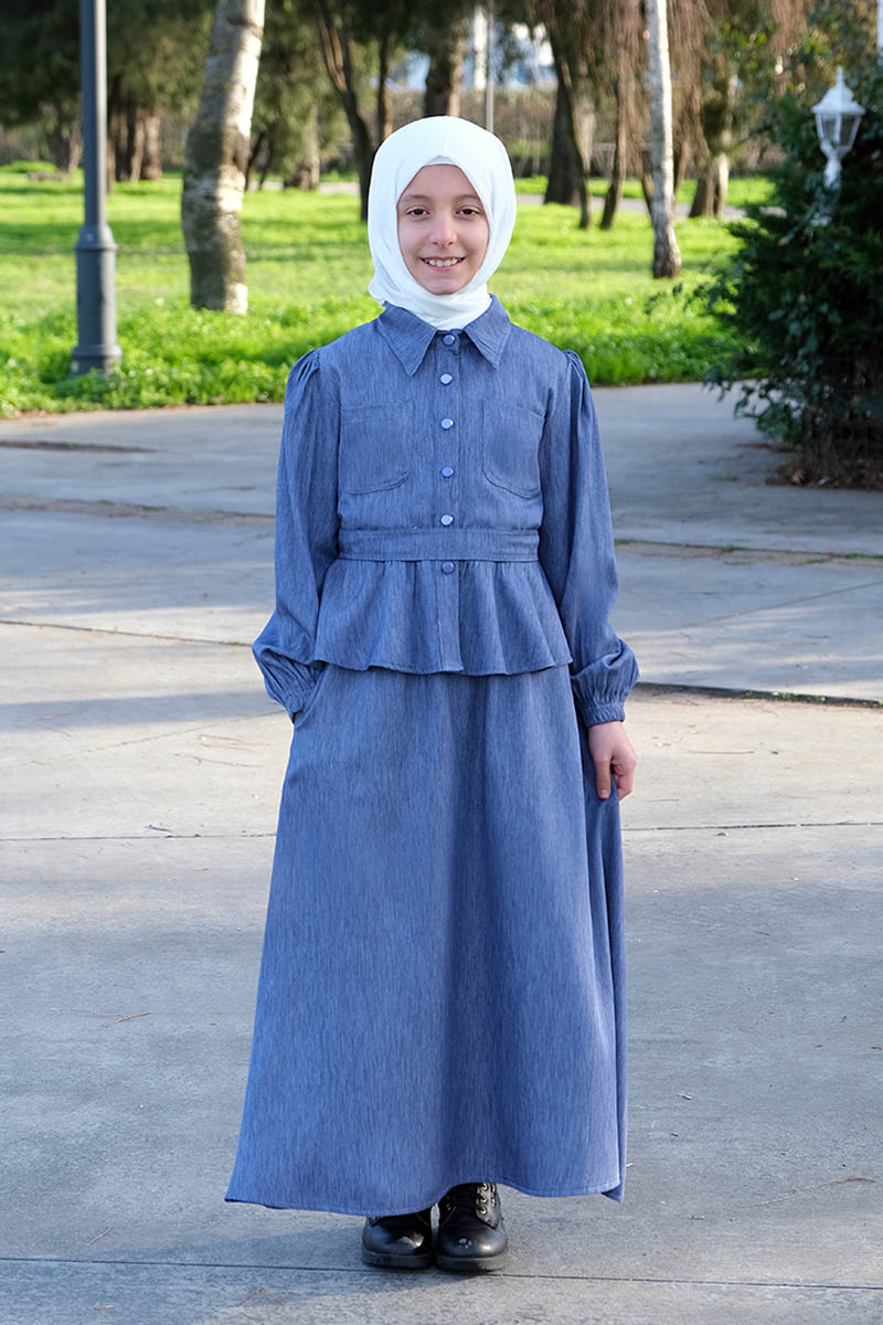 Çocuk Tesettür Tunik Takım Sevil Model Mavi Ürün Özellikleri
